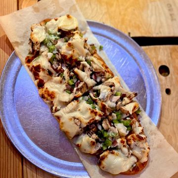 Choose between a full or half order-- Crispy Corn Tortilla Chips topped with Snuggy Beer Cheese, Chicken or Chorizo Sausage, a Sprinkle of Mozzarella and Jalapenos-- then baked to perfection! *served with salsa and sour cream