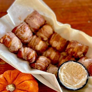 Baked with butter, Swiss cheese, Canadian bacon, and a honey drizzle, served with our Snuggy beer cheese. Sweet and salty!