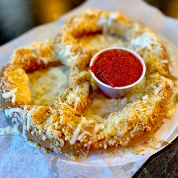 Our pretzels are one pound of Bavarian-recipe goodness-- served with a complimenting sauce!